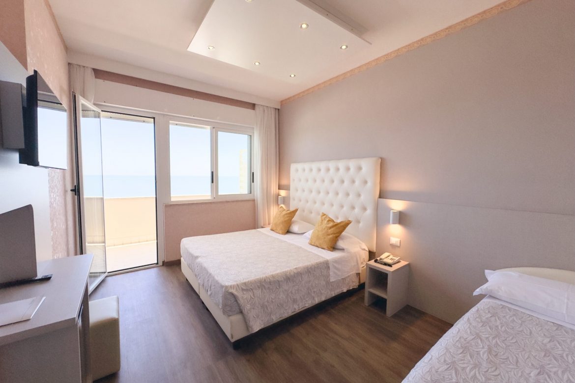 Doppel- und Dreibettzimmer mit Balkon und Meerblick, wo Sie maximale Entspannung in voller Privatsphäre genießen können.